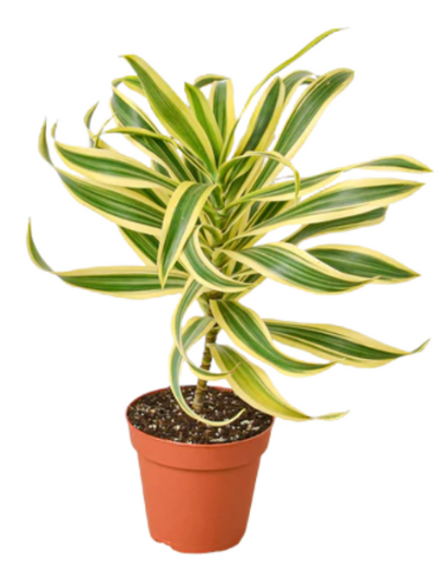 Vibrant architectural plant. The Song of India (Dracaena reflexa) is a slow-growing houseplant with striking green and yellow striped leaves. It can grow into a beautiful small tree/bush over time.